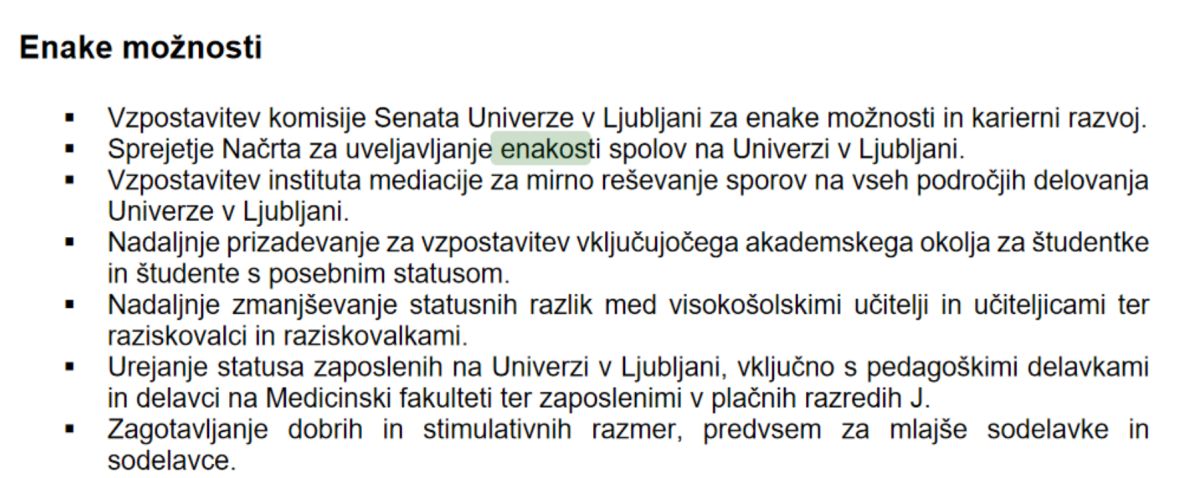 Dr. Papič pred volitvami za morebitni novi mandat rektorja v svojem programu izkazuje »naprednjaštvo« tudi tako, da je pri sklopu »Enake možnosti« napovedal »sprejetje načrta za uveljavljanje enakosti spolov na Univerzi v Ljubljani«.