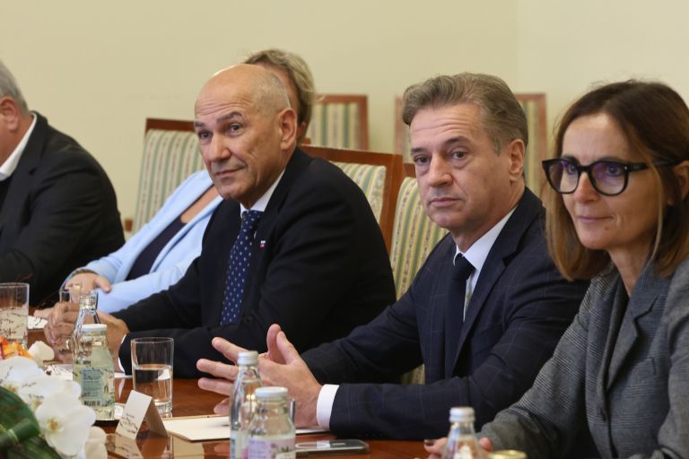 Zgovoren prizor iz predsedniške palače: Robert Golob in Janez Janša pred fotografskimi objektivi in televizijskimi kamerami nista mogla skriti, da se celo osebno ne prenašata.