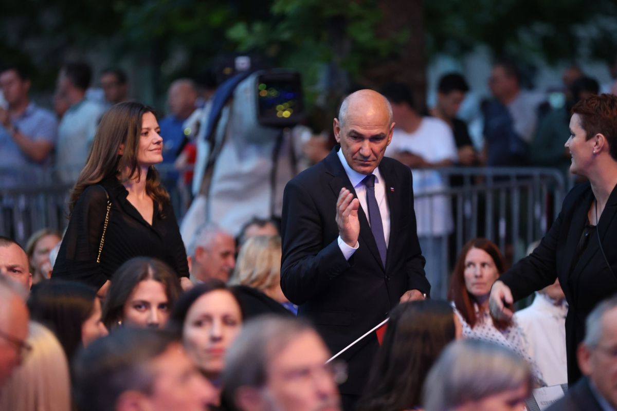 Proslave na Kongresnem trgu, s katero letos obeležujemo 33. obletnico sprejema ključnih osamosvojitvenih dokumentov, so se udeležili tudi drugi predstavniki državnega vrha in njihovi partnerji. Premierja Goloba je spremljala Tina Gaber, predsednico Pirc Musarjevo njen soprog Aleš Musar.
