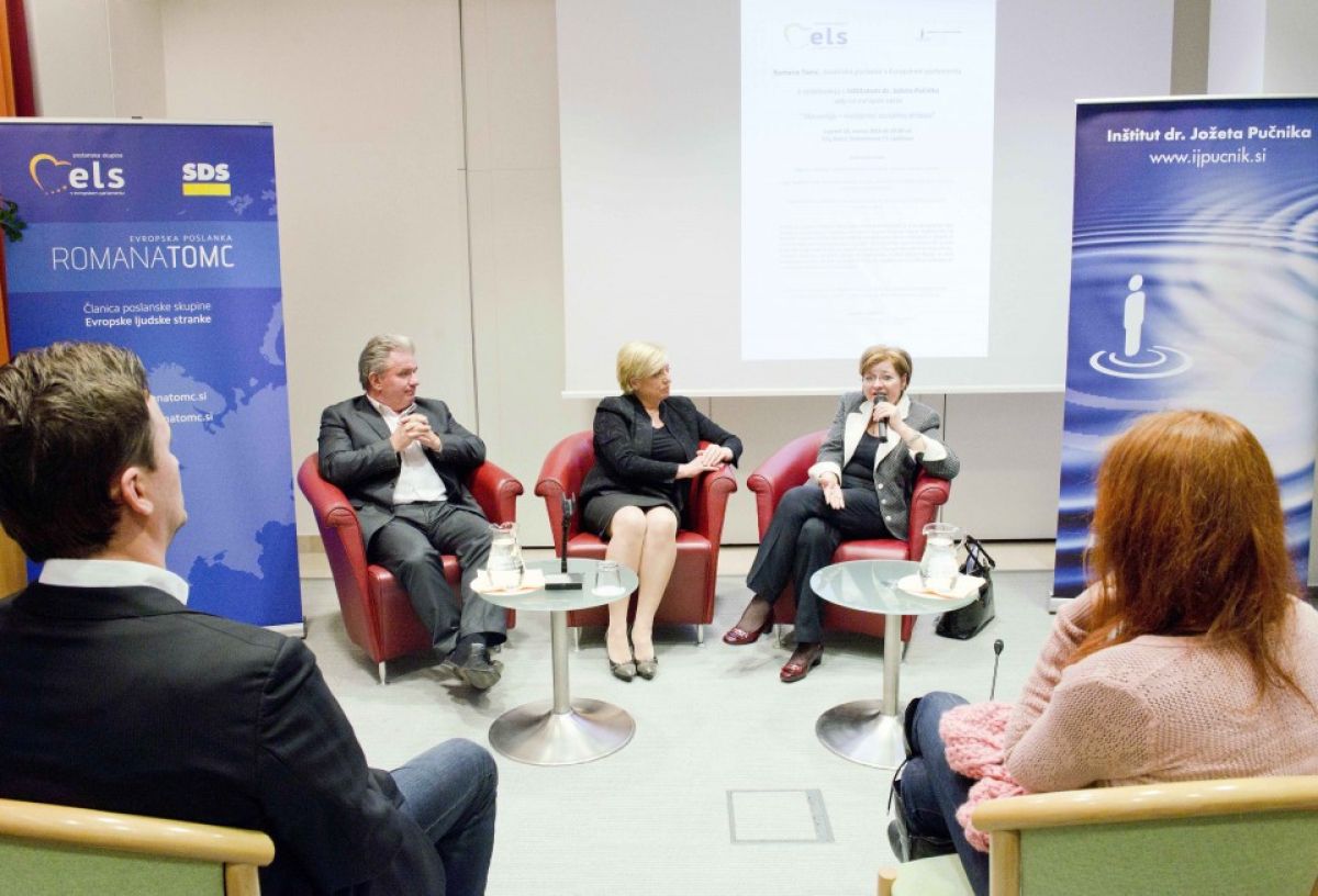 V sodelovanju evropske poslanke Romane Tomc (SDS/ELS) in Inštituta dr. Jožeta Pučnika je včeraj v City hotelu v Ljubljani potekal evropski večer z naslovom »Slovenija - moderna socialna država«.
