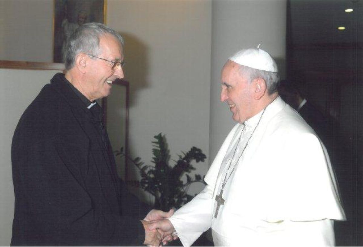 Na fotografiji je pater Jože Roblek pri papežu Frančišku 10. decembra. »Božji duh me je notranje nagovarjal, da moram nekaj več narediti za slovensko Cerkev, … da moram iti v Rim, h Kristusovemu namestniku na zemlji in mu poročati, kako je dejansko z nami … Najprej sem šel k nunciju, potem pa naprej,« je o romanju v Rim povedal p. Roblek v pogovoru s p. Petrom Lahom.