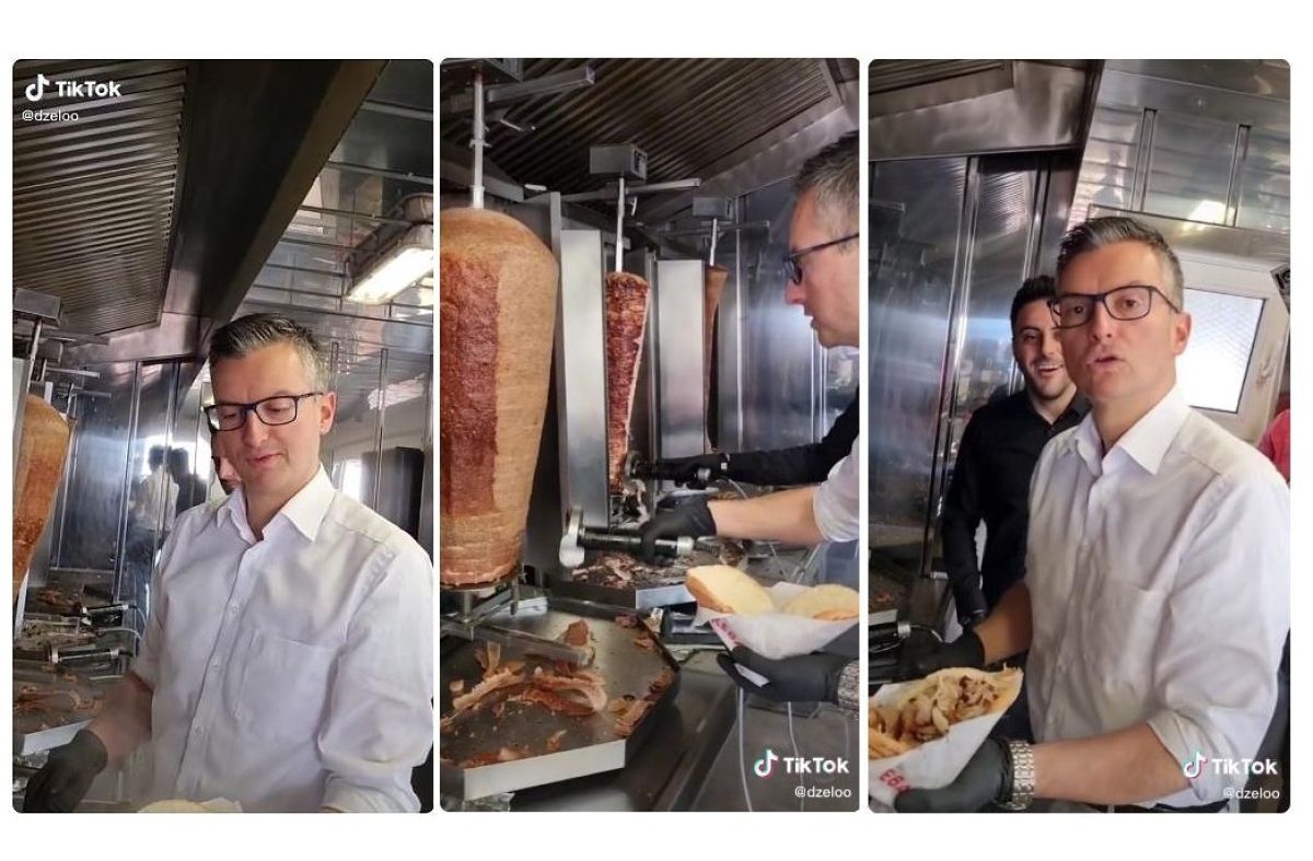 Prvak stranke LMŠ Marjan Šarec se je v okviru svoje predvolilne kampanje v sredo ustavil tudi v znani okrepčevalnici s hitro prehrano med Domžalami in Kamnikom. Lastnika okrepčevalnice brata Dželadini sta širši Sloveniji znana tudi kot »zvezdi« TikToka, Šarec pa je menda njuna redna stranka. Povabila sta ga v kuhinjo in izzvala, da se preizkusi v pripravi kebaba.