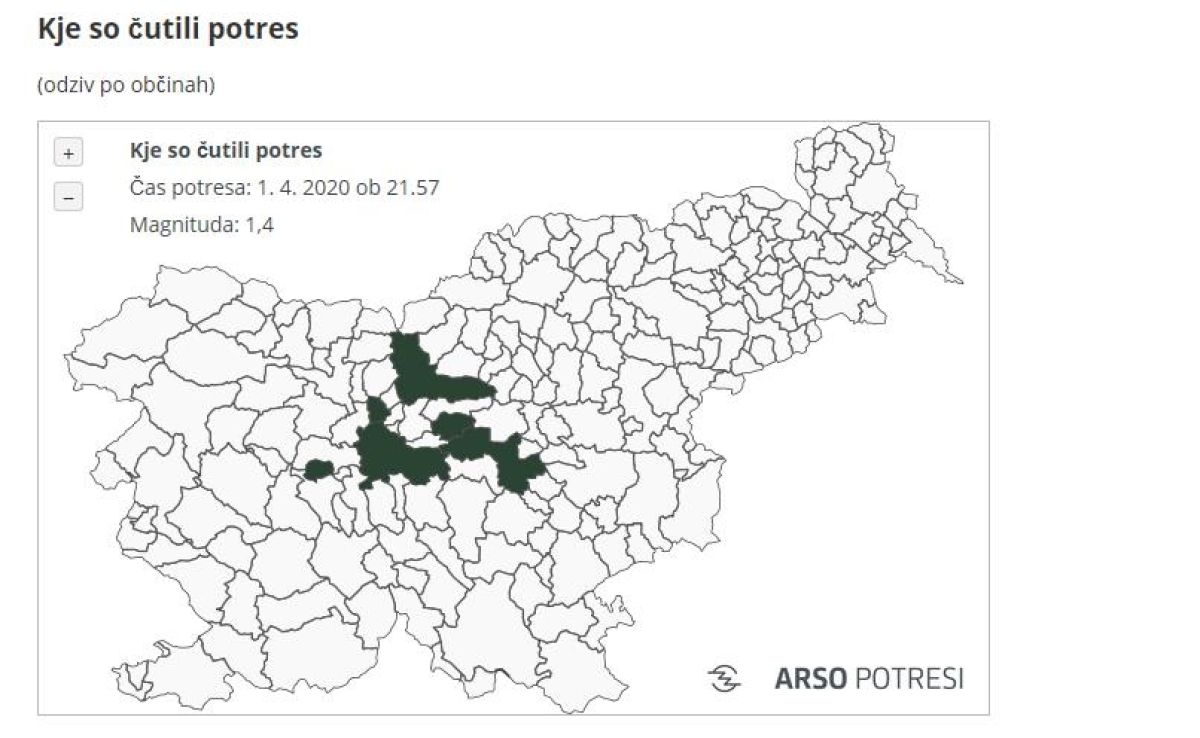 Intenziteta potresa v širšem nadžariščnem območju ni presegla III. stopnje po evropski potresni lestvici, potres pa so čutili posamezni prebivalci Ljubljane in Polja pri Vodicah, so še sporočili iz Urada za seizmologijo in geologijo pri Agenciji RS za okolje.