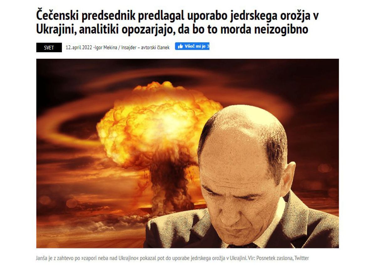 Pred dvema dnevoma je na insajder.com napisal članek, da je čečenski voditelj Ramzan Kadirov, ki so ga pri časniku The Guardian poimenovali »Putinov napadalni pes«, glede Ukrajine predlagal uporabo jedrskega orožja. Kadirov, znan po ugrabitvah in mučenjih svojih političnih nasprotnikov v Čečeniji, je oznanil, da bi morali v Ukrajini »na določenih območjih udariti s taktičnim jedrskim orožjem, če bo v tam vsaj en tuj plačanec«. Mekina v članku piše, da »ruski analitiki opozarjajo, da bo to morda neizogibno«.