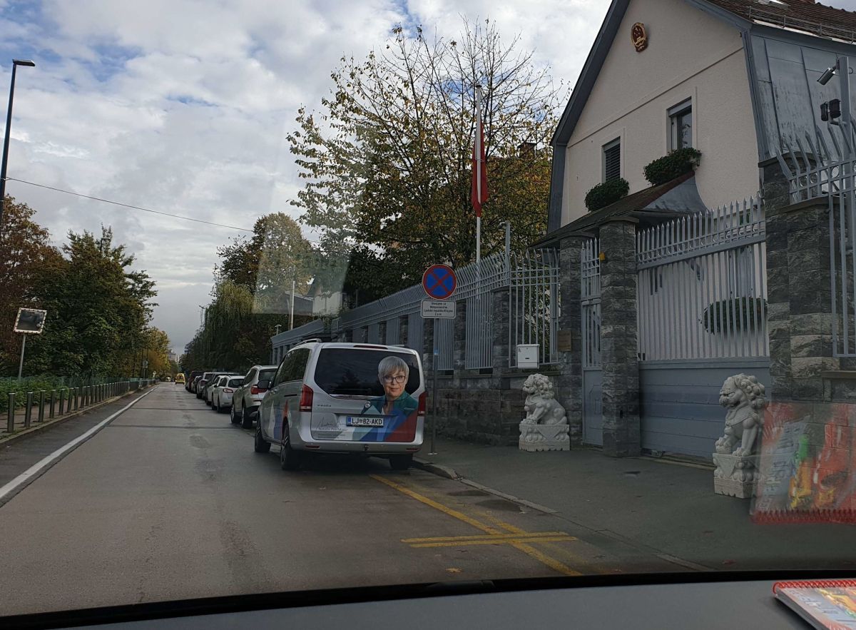 Bralec nam je poslal fotografijo kombija volilnega štaba Nataše Pirc Musar, ki je bil v torek parkiran pred kitajskim veleposlaništvom v Ljubljani. Kot zatrjuje, je šofer v avtomobilu čakal osebo, ki je medtem obiskala omenjeno veleposlaništvo.