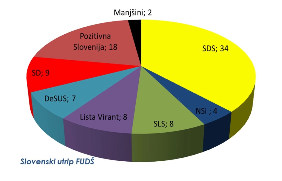 Zadnja volilna napoved Slovenskega utripa Fakultete za uporabne družbene študije napoveduje zmago SDS (36,6 odstotka) pred Pozitivno Slovenijo (19,8 odstotka) in SD (9,8 odstotka).