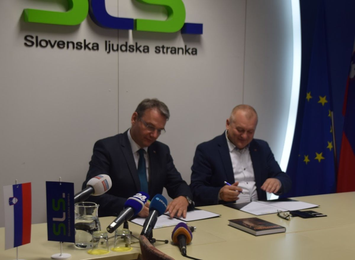 Predsednik SLS Marjan Podobnik in predsednik NLS Franc Kangler sta točno opoldne podpisala pismo o nameri, s katerim sta se stranki dogovorili za skupen nastop na evropskih volitvah maja prihodnje leto, kakor tudi za skupen nastop na prihodnjih parlamentarnih volitvah.