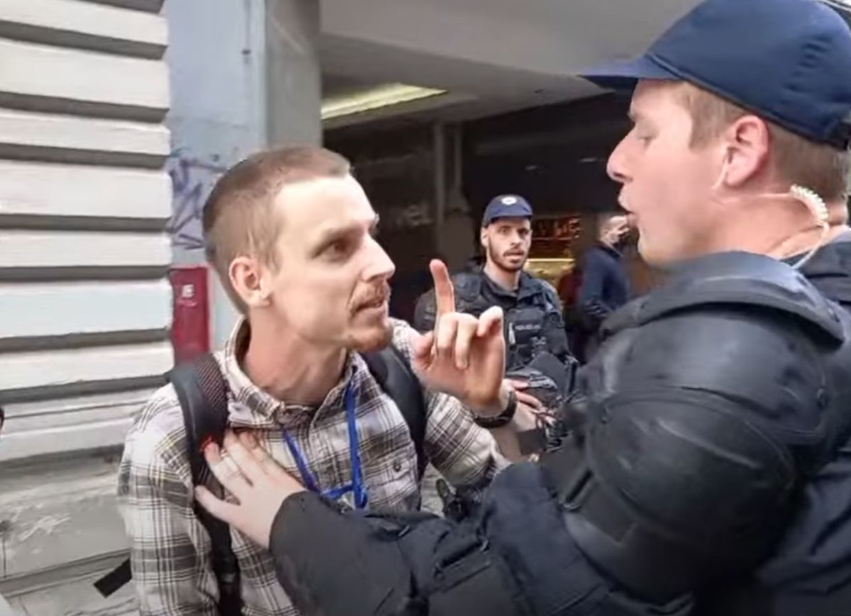 Kurir je snemal in na spletu prenašal včerajšnje proteste proti pogoju PCT v Ljubljani – vmes je tudi nekajkrat nagovoril ter provociral policiste in druge ljudi. Incidenta vseeno ni bilo, vse dokler ni posegel v prepir dveh žensk z varnostnikoma Name – domnevno sta želeli brez maske vstopiti v veleblagovnico, kar sta jima varnostnika preprečila, nato pa sta ju zadržala in poklicala policijo.
