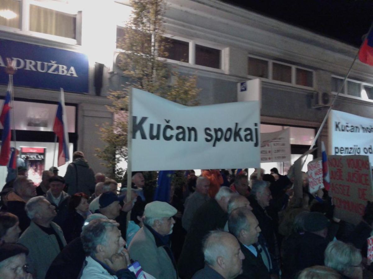 Zahtevamo lustracijo za sodnike, ki pod taktirko Kučana kršijo človekove pravice in ustavo, so pred hotelom zahtevali v Odboru 2014, ki je organiziral shod. Milana Kučana so neuspešno pozivali, naj pride iz hotela in se sooči z njimi.