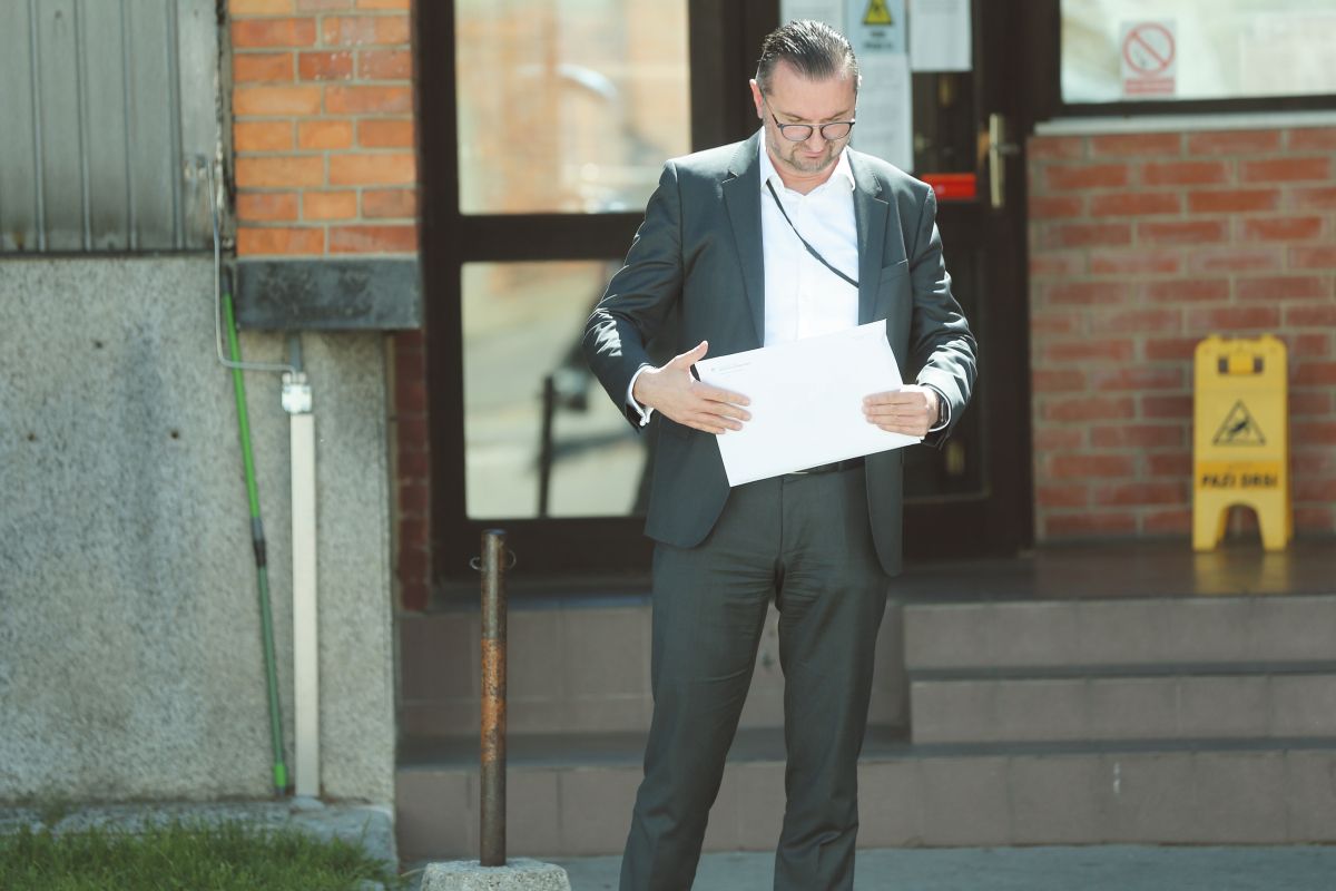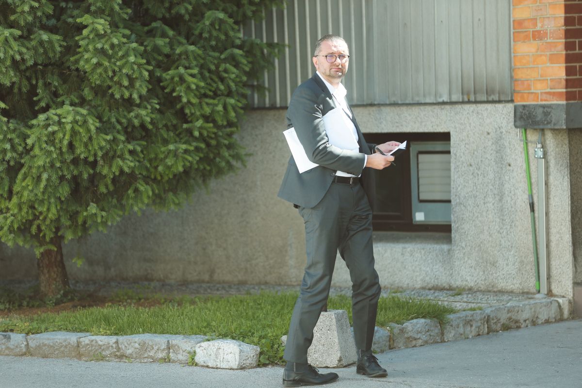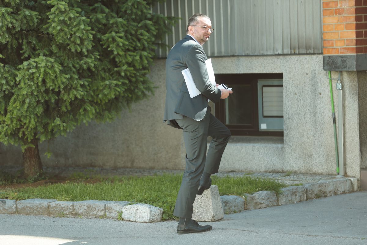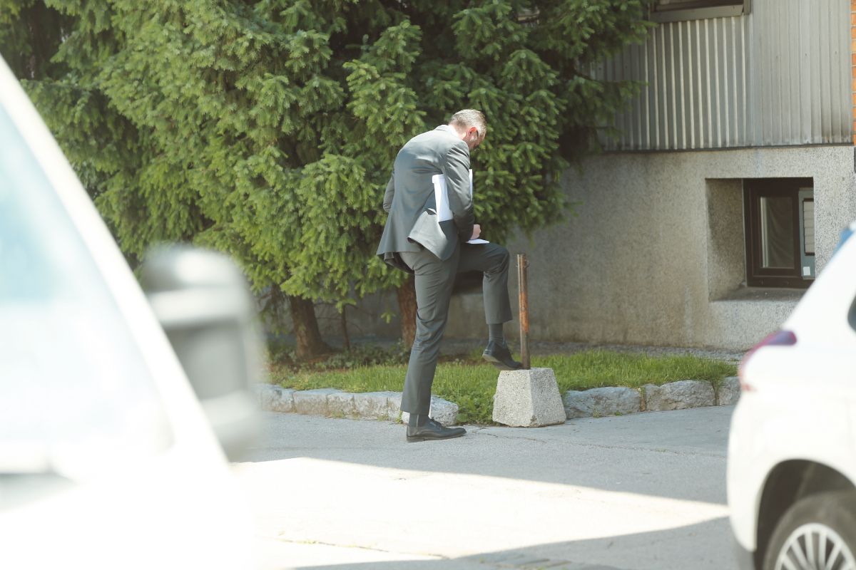 Prejšnjo sredo 27. maja v dopoldanskih urah je fotoreporter našega tednika na Kotnikovi ulici ravno odhajal s fotografiranja intervjuja z ministrom za gospodarstvo Zdravkom Počivalškom, ko je naključno »ujel« Stuška. Direktor Sove seveda ni bil ravno navdušen nad fotografiranjem. V rokah je nosil večjo kuverto, katere vsebina ni znana, je pa znan naslovnik (na objavljenih fotografijah smo ga izbrisali). Gre za eno od zasebnih splošnih zdravstvenih ambulant. To smo ugotovili ob fokusiranju posnetka.