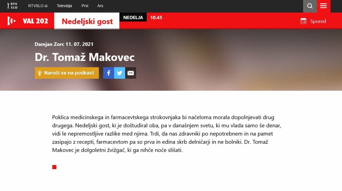 Makovca, sicer diplomiranega farmacevta in doktorja biokemije, ki je zaposlen na Medicinski fakulteti Univerze v Ljubljani, so v oddaji Nedeljski gost predstavili kot »dolgoletnega žvižgača, ki ga nihče noče slišati«.
