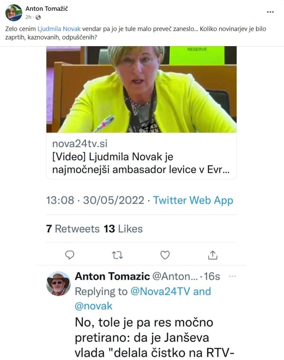 Na to se je odzvala Novakova, ki je Janševi vladi očitala odstavljanje direktorjev, čistko na javni radioteleviziji in uničevanje Slovenske tiskovne agencije. »Meni je žal, da je moja stranka žrtev tudi takega delovanja. To je izključno poraz Janeza Janše,« je dejala in dodala, da so bile volitve »referendum proti Janši«.