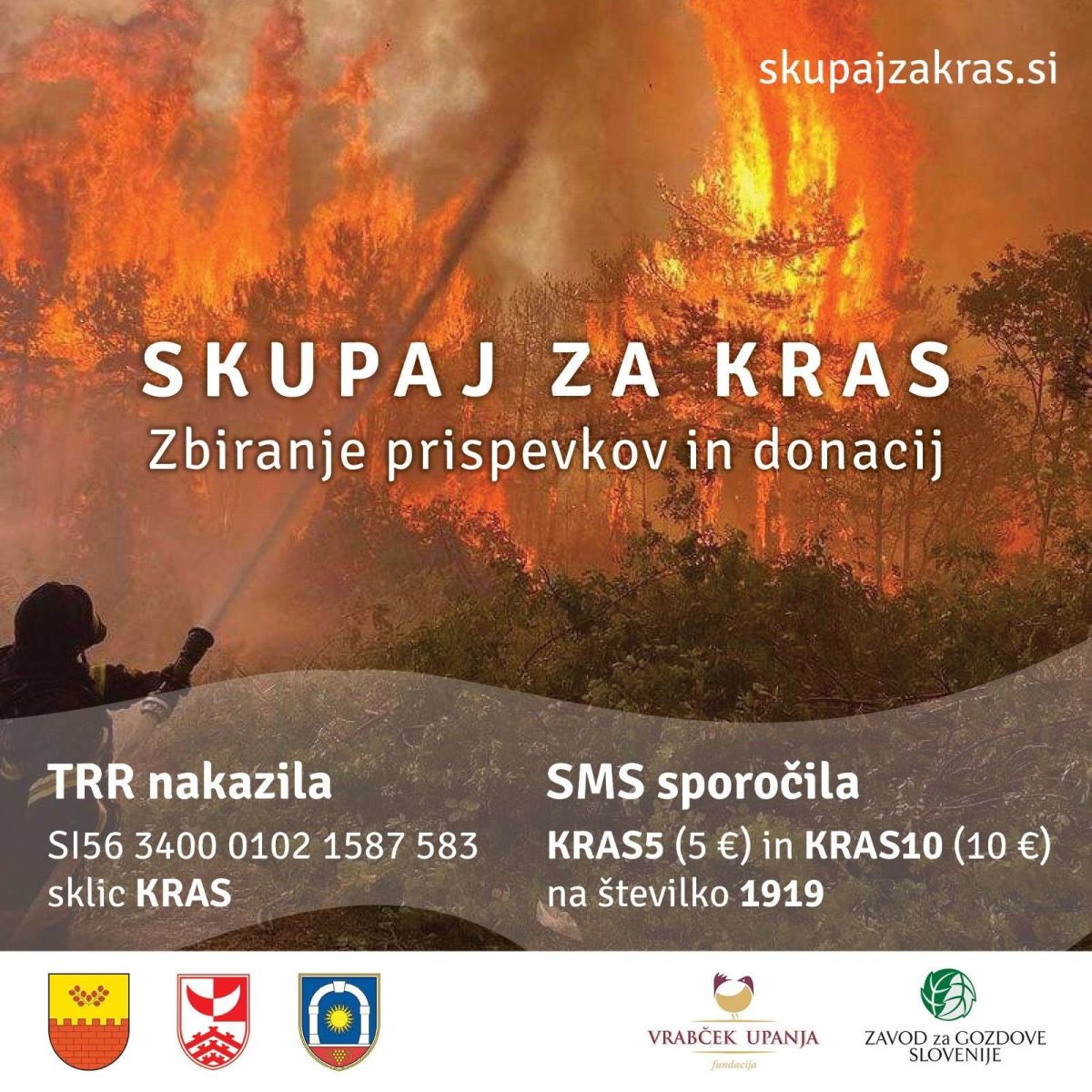 Da bi odgovorili na številne pobude javnosti, ki želi prispevati k obnovi Krasa, so s Fundacijo Vrabček upanja podpisali pogodbo za zbiranje donacij. Za zbiranje prispevkov in donacij je odprt račun fundacije pri Banki Sparkasse (SI56 34000-1021587583, sklic KRAS), donacijska sredstva na isti račun pa se zbirajo tudi preko SMS s ključno besedo KRAS5 (5evrov) in KRAS10 (10 evrov) na telefonsko številko 1919.