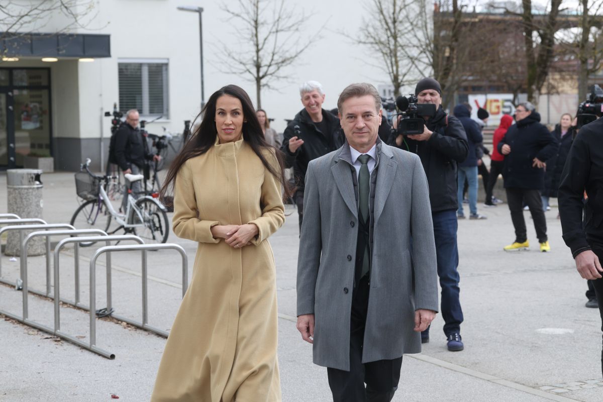 Predsednik Gibanja Svoboda in premier Robert Golob je na volišče prišel v spremstvu soproge Tine Gaber Golob, prvak SDS Janez Janša pa z ženo Urško Bačovnik Janša.