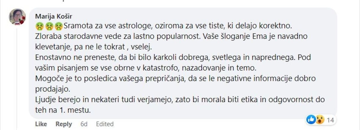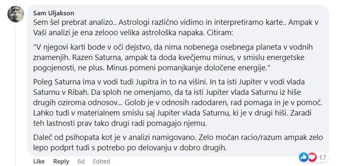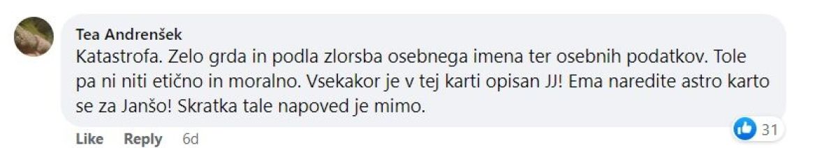 Pristranskost Kurentov je šla v nos tudi komentatorjem, ki so ji očitali zlorabo podatkov v negativne namene, obrekovanje, sovražno mnenje, sramoto in desničarska zlorabo astrologije. Po razburjenju, ki ga je sprožil ta njen zapis, je na facebooku objavila zapis, v katerem je zanikala blatenje Goloba. »Najbrž ste spregledali, da nisem niti z besedo namignila, da je Golob dober ali slab človek.« To resda drži, a kakšen zaključek bo potegnil bralec njenega izvirnega zapisa, ki Kurentovi zaupa in obenem še ne mara Goloba?