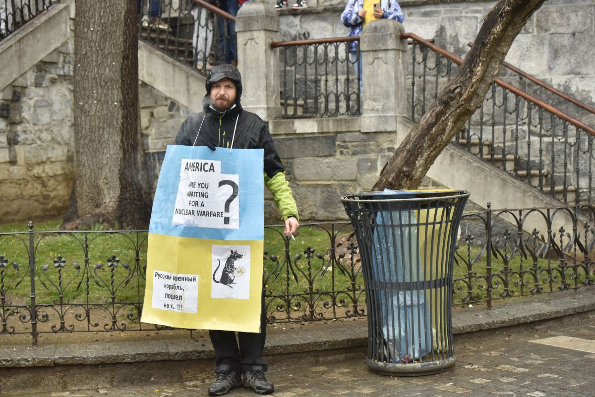 Protestniki so zato svoje nestrinjanje najprej izražali pred Moderno galerijo, pozneje pa so se odpravili na shod okoli ograjenega ruskega veleposlaništva ter pot nadaljevali proti Prešernovemu trgu, kjer se je protest po dobri uri tudi zaključil.