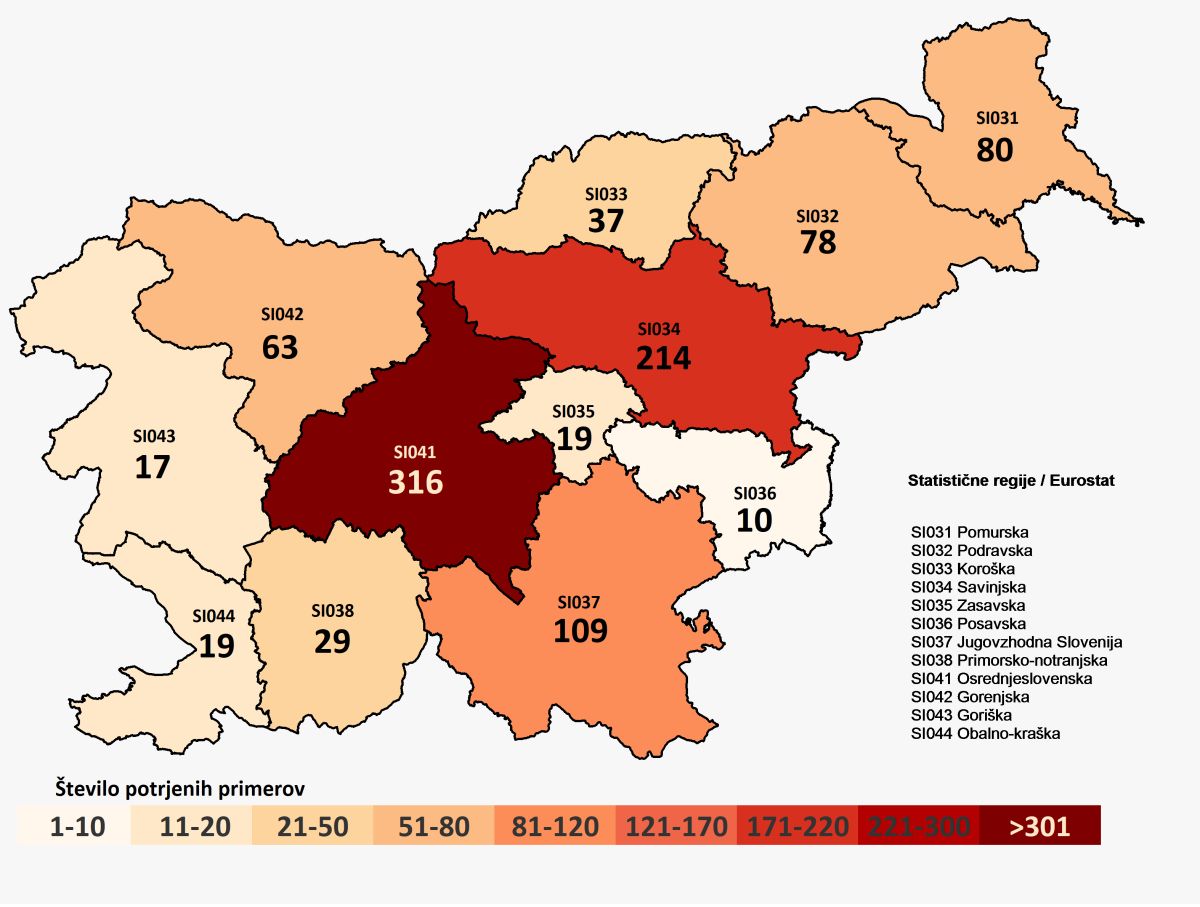 V Sloveniji 997 okužb s covidom-19, v soboto 20 novih - podatki po občinah