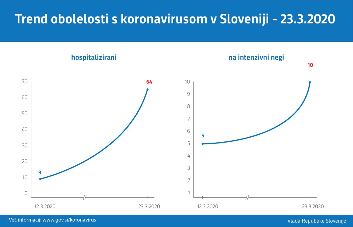 Po podatkih, ki jih je vlada objavila na uradnem twitter profilu, imamo do danes v Sloveniji 64 obolelih oseb hospitaliziranih, od tega jih je 10 na intenzivni negi.