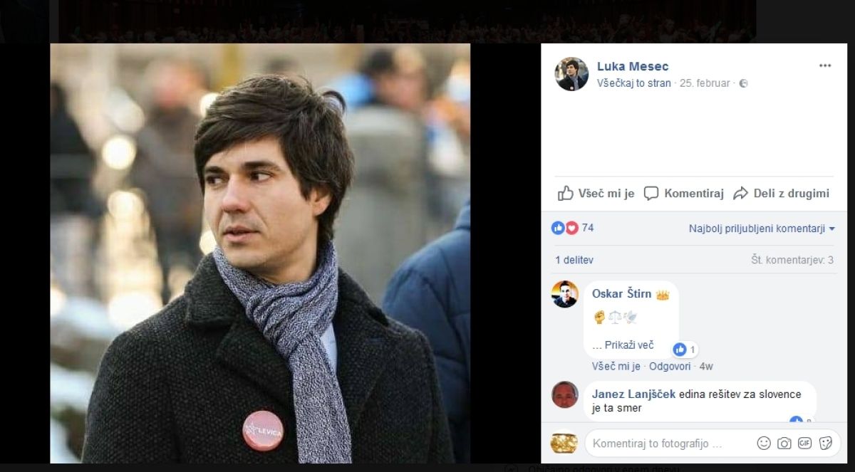 Vse je naše, si mislijo v Levici in tako je Luka Mesec za svojo profilno fotografijo na facebooku uporabil kar fotografijo, ki jo je posnel Reporterjev fotograf Primož Lavre