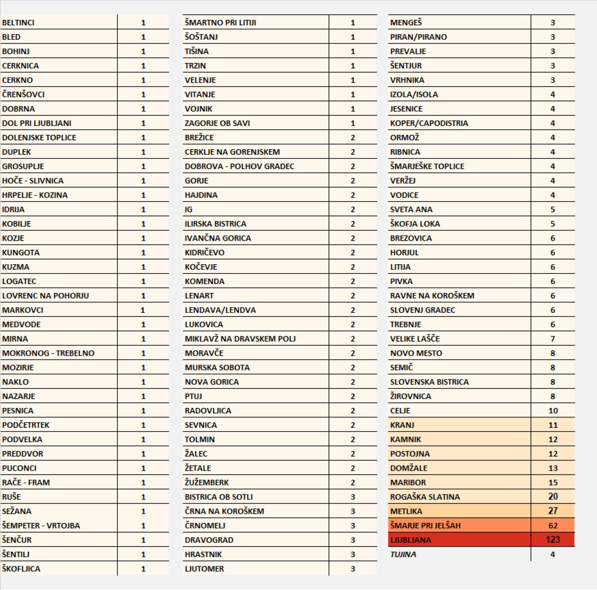 V Sloveniji do danes potrjena okužba z novim koronavirusom pri 562 osebah in 6. smrtna žrtev - podatki po občinah