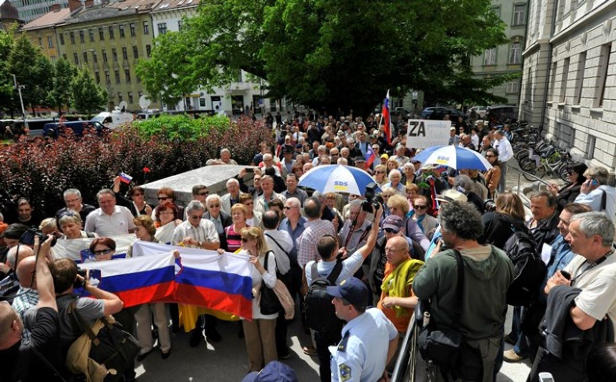 Prvaka SDS čaka začetek obravnave na drugi stopnji v zadevi Patria. "Brez dokazov je lahko obsojen vsak! Danes Janša, jutri Ti!" pozivajo organizatorji shoda.