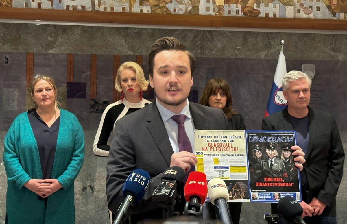 Kot nesprejemljivo je naslovnico označil tudi vodja poslancev Levice Matej Tašner Vatovec. "Sploh pa je absurdno, da trobilo stranke, ki jo že 33 let vodi ista oseba in katere vidni pripadniki paradirajo z domobranskimi simboli ter manifesti neonacističnih skupin, obsoja kogarkoli simpatiziranja z nacizmom," je zapisal na družbenem omrežju X.
