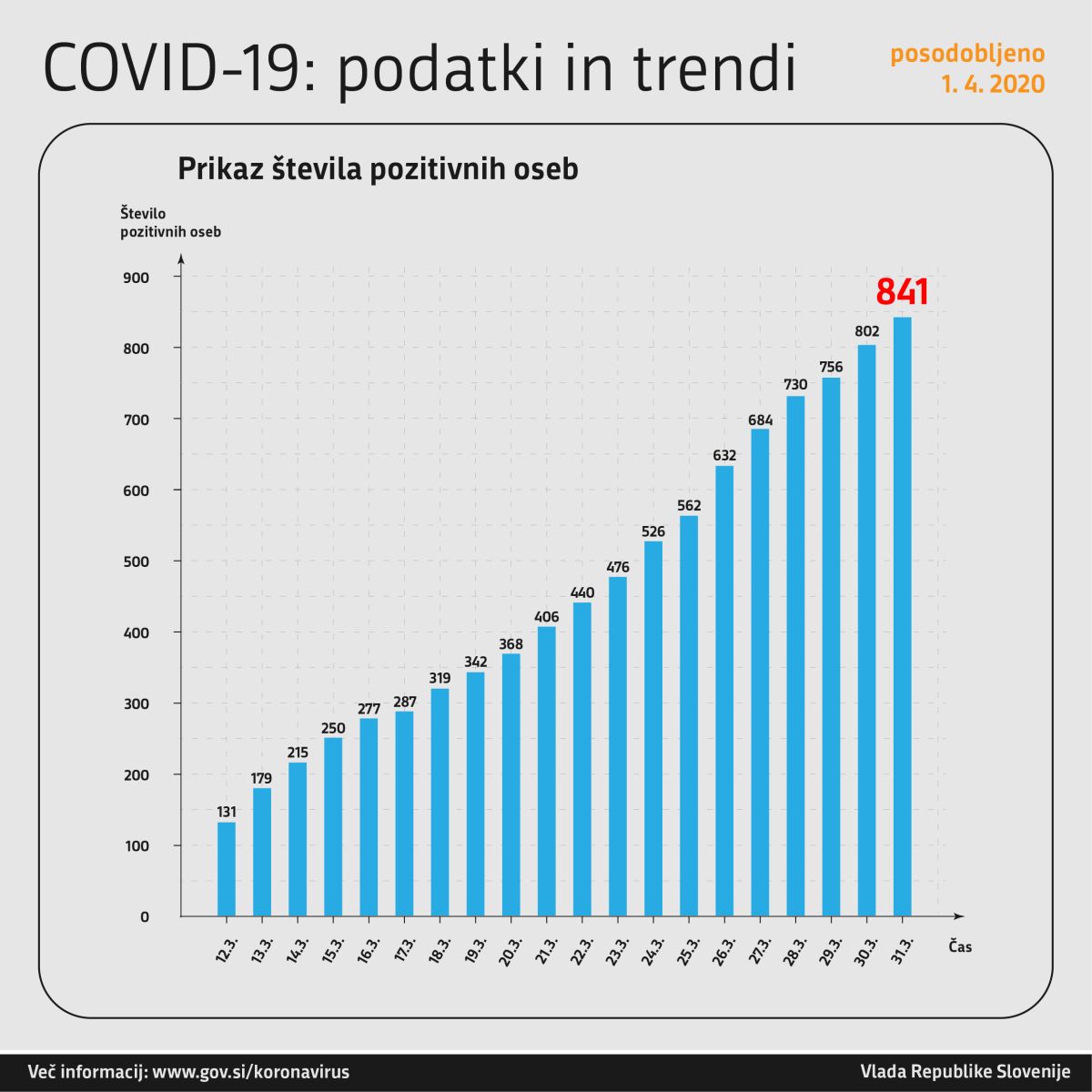 Po epidemioloških podatkih, ki so jih na NIJZ prejeli do tedaj, gre za 841 oseb. Pri nekaterih osebah je bil test opravljen večkrat, tri osebe pa so testiranje opravile v tujini.