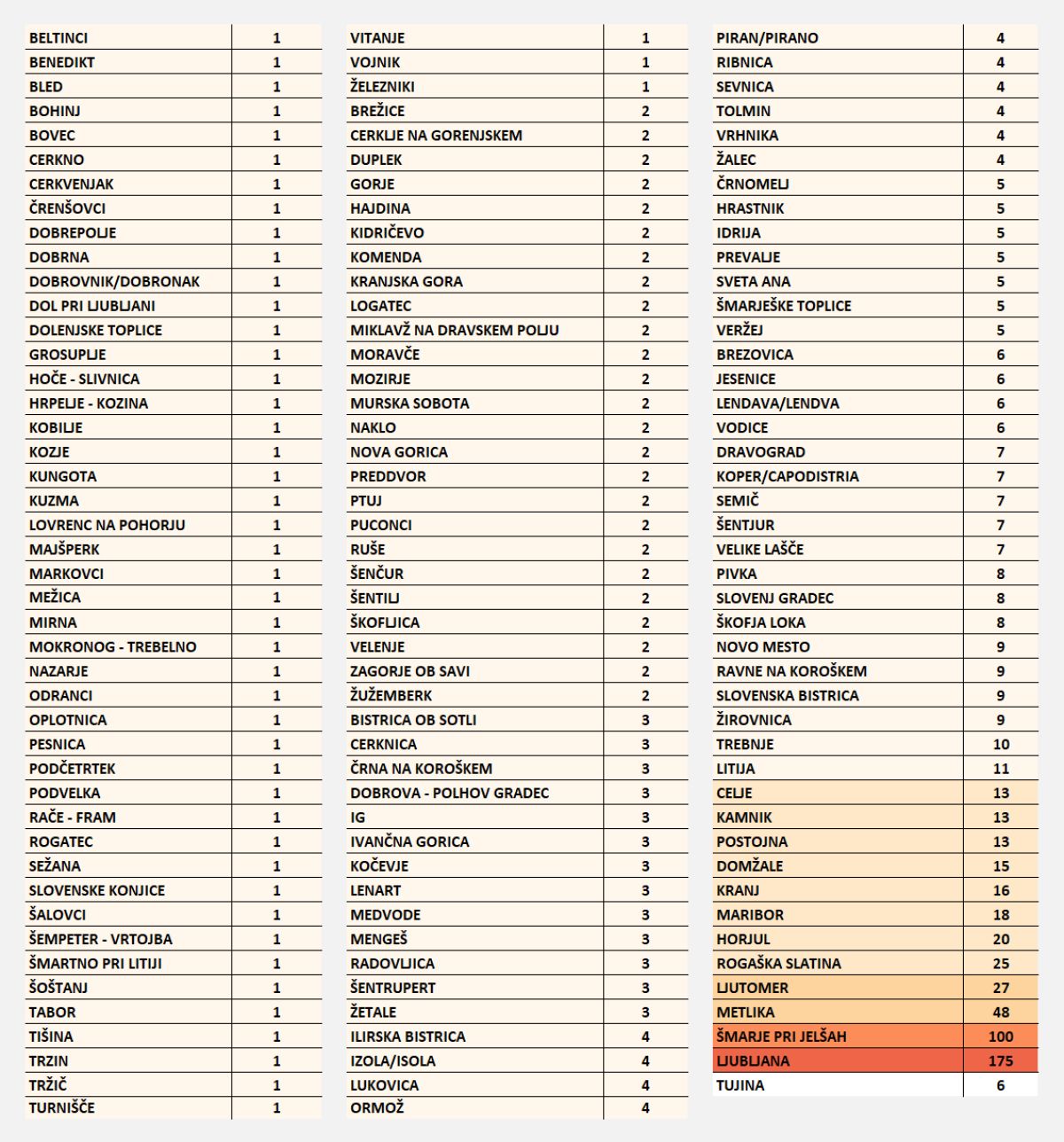 Podatki po občinah:
