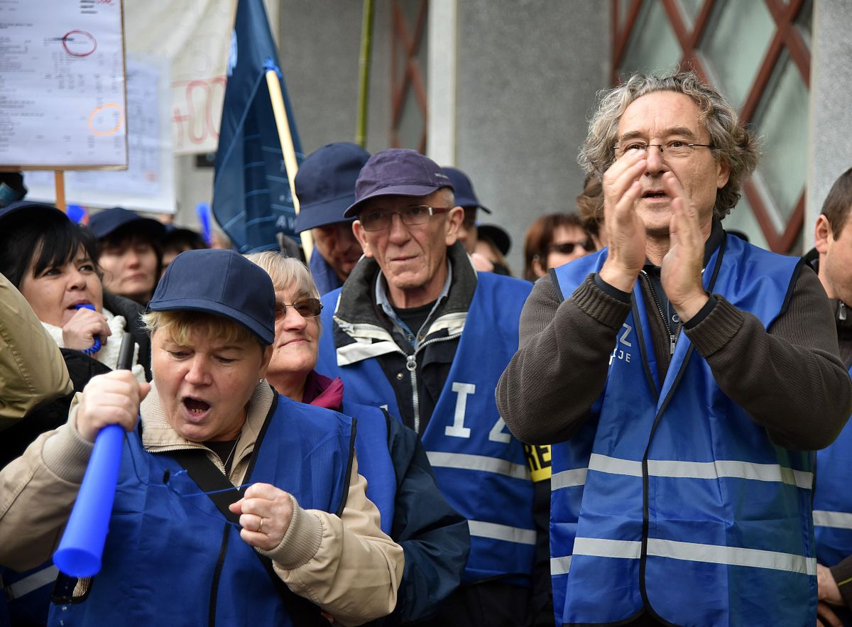 Pred poslopjem vlade se je odvil protest okoli 2500 zaposlenih v javnem sektorju z najnižjimi plačami.
