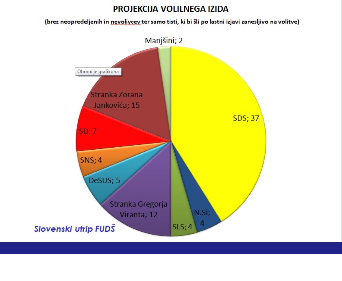 Po projekciji volilnega izida javnomnenjske raziskave Fakultete za uporabne družbene študije, ki je bila opravljena s telefonsko anketo 20. in 21. oktobra 2011 na vzorcu 903 anketirancev, je na drugem mestu Stranka Zorana Jankovića (15 poslancev), na tretjem pa Stranka Gregorja Viranta (12 poslancev). Poleg največjih treh: SDS, Stranke Zorana Jankovića in Stranke Gregorja Viranta, bi se v parlament uvrstilo še pet strank: SD bi prejela 7 poslancev, Desus 5 poslancev, Nova Slovenija, SLS in SNS pa vsaka po štiri poslance. LDS in Zares bi ostali pred parlamentarnim pragom.