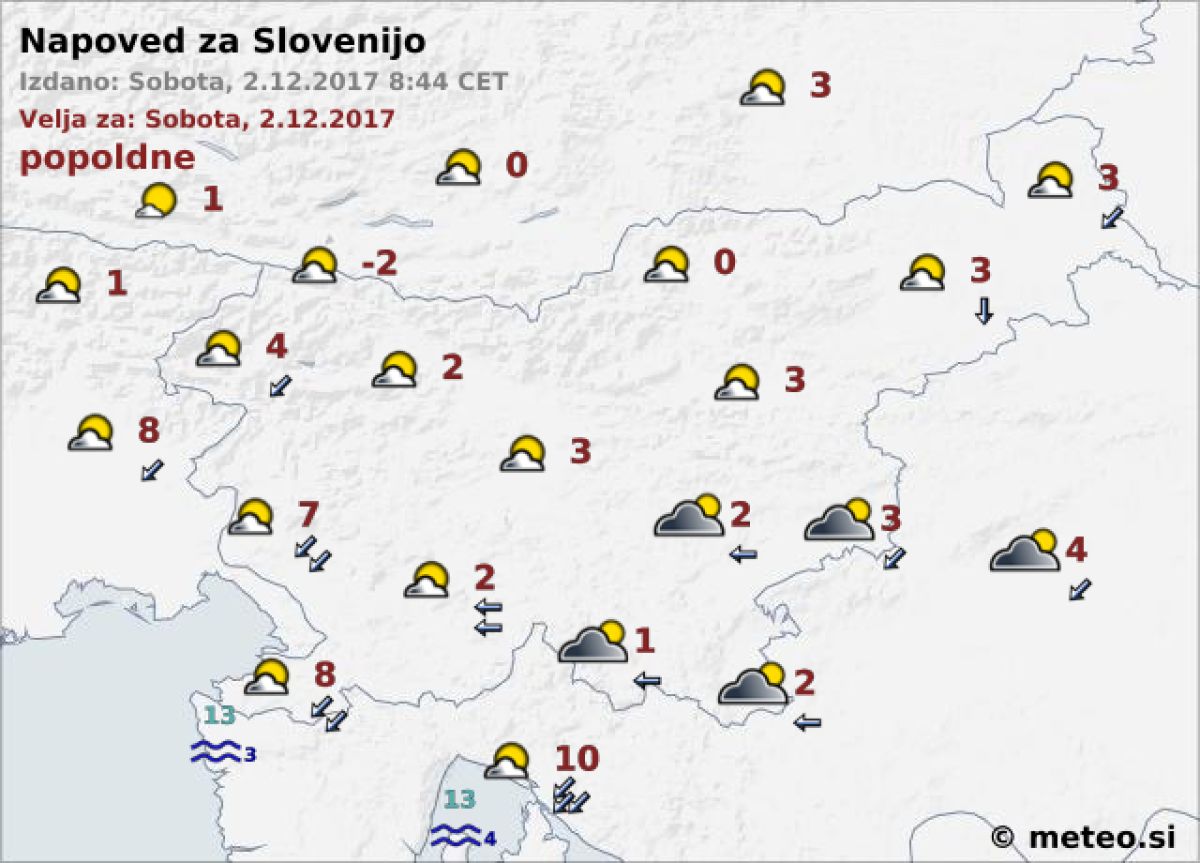 Na Primorskem bo pihala večinoma zmerna, na izpostavljenih mestih močna burja, v severovzhodni Sloveniji pa severni veter. Najvišje dnevne temperature bodo od 0 do 4, na Primorskem do 8 °C.