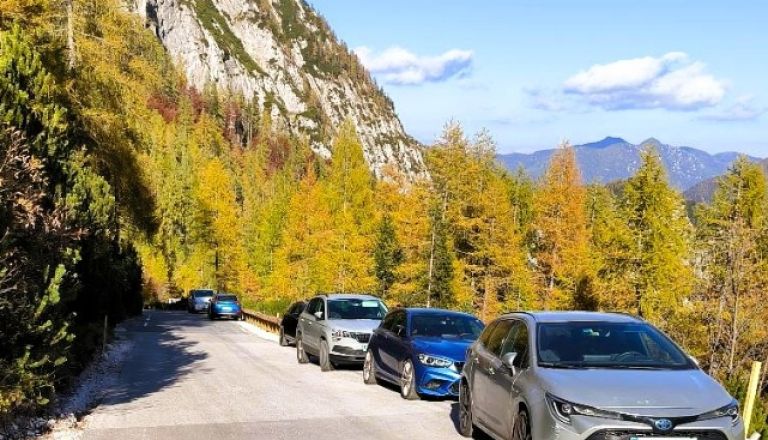 Vršič: ljubitelji macesnov parkirali ob cesti in ustvarili kaos