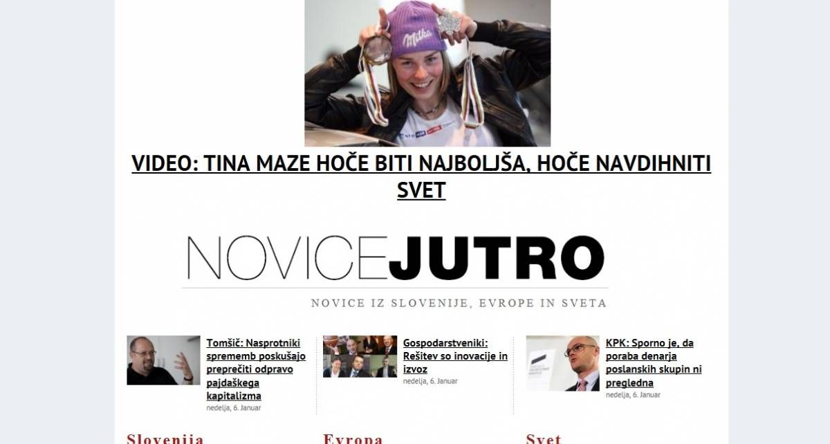 Na enem mestu, na spletni strani www.novicejutro.si, so vsako jutro dostopne povezave do najbolj zanimivih člankov glavnih tiskanih, elektronskih in spletnih medijev iz Slovenije, EU in sveta.