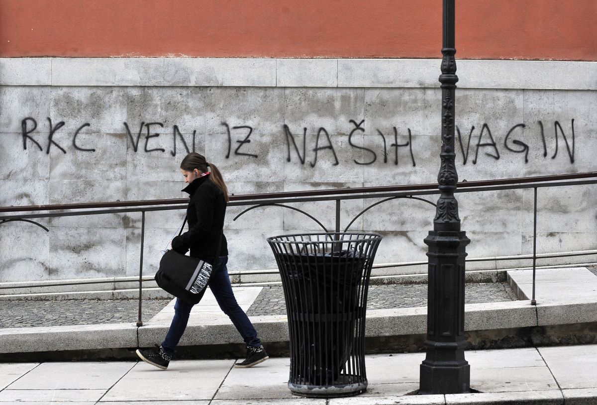 Na ljubljanski policijski upravi so za STA potrdili, da so včeraj v dopoldanskih urah prejeli prijavo o grafitu na ljubljanski stolnici, katerega vsebina izraža nasprotovanje vmešavanju Cekrve v odločanje o rojstvu otrok. Grafit se je pojavili teden dni za tem, ko so v Zavodu Božji otroci pred ginekološko kliniko pripravili shode in molitve proti splavu.