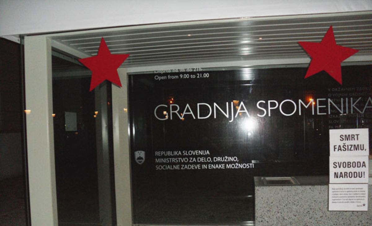 Neznanci so oskrunili postavitveni prostor za spomenik vsem žrtvam vojn v središču Ljubljane. Polepili so ga z rdečimi zvezdami, ki pa so jih pristojni lahko odlepili, zato večja škoda ni nastala. Policisti so obvestili lastnika objekta in o dejanju zbirajo obvestila, so za STA pojasnili na Policijski upravi Ljubljana.