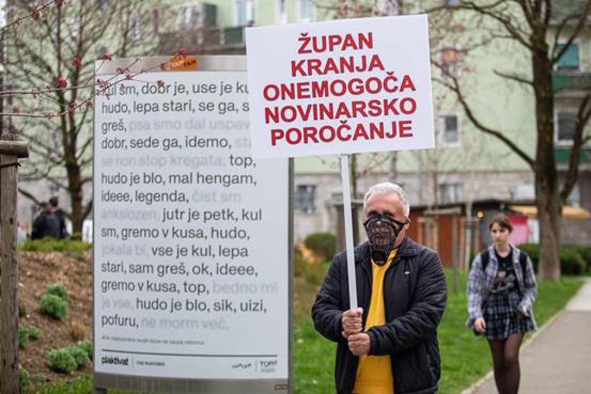 Odzval se je s protesti: na novinarsko konferenco o dosežkih mestne občine je prišel z nagobčnikom, nato je z nagobčnikom in transparentom »Župan Kranja onemogoča novinarsko poročanje« kvaril sliko ob obisku poljskega predsednika Dude v Kranju. Ob tem je pomenljivo kritiko namenil »bivšemu borcu za pravice ipd. novinarjev in novinarstva«, danes pa direktorju občinske uprave Bojanu Veselinoviču ki Šubicu na njegova vprašanja menda odgovarja le »brez komentarja«.