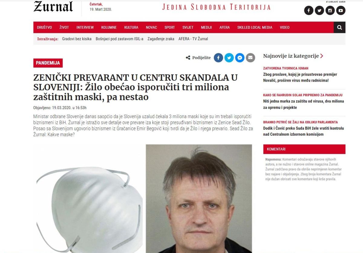 Slovenija je zaščitne maske naročila pri podjetju Global Promet. Direktor podjetja Emir Begović iz Bosne in Hercegovine je za Televizijo Slovenija (TVS) pojasnil, da je bilo njegovo podjetje zgolj posrednik med slovenskim podjetjem Labena in bosanskim podjetjem Winsdor Group. Tega po javno dostopnih podatkih vodi Sead Žilo, ki se po poročanju TVS Begoviću ne javlja več.