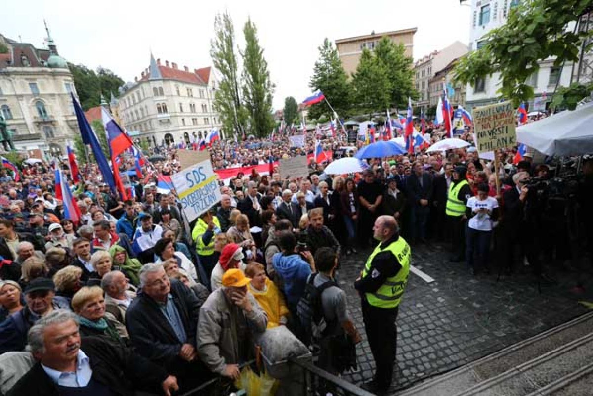 Kot velik val na morju, tak je bil pogled na množico protestnikov, ki so se v podporo opozicijskemu voditelju Janezu Janši zbrali na Kongresnem trgu in nadaljevali pohod proti Prešernovemu trgu. Med okoli 12.000 protestniki, ki so izmenično skandirali »Janša« in vzklikali »Kučana v zapor«, so vihrale slovenske zastave. Med njimi je bila tudi zastava Silvana Radina, slovenskega ribiča iz Kopra, ki je potrdil, da še nikoli v življenju ni lovil indičnih rib.
