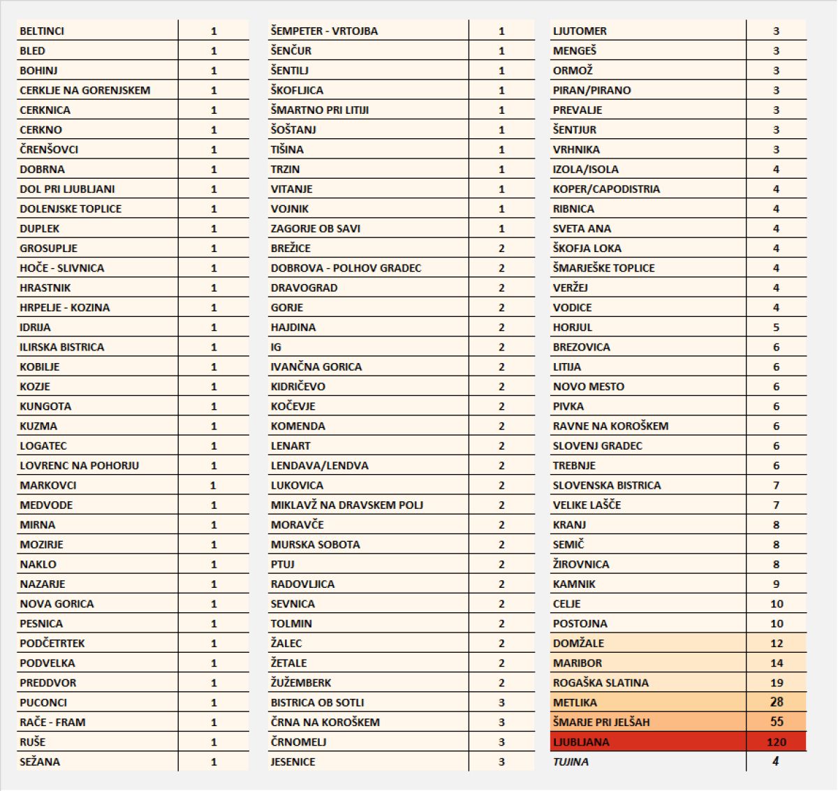 Zabeležili doslej največji skok števila okuženih v Sloveniji (tabela) - podatki po občinah