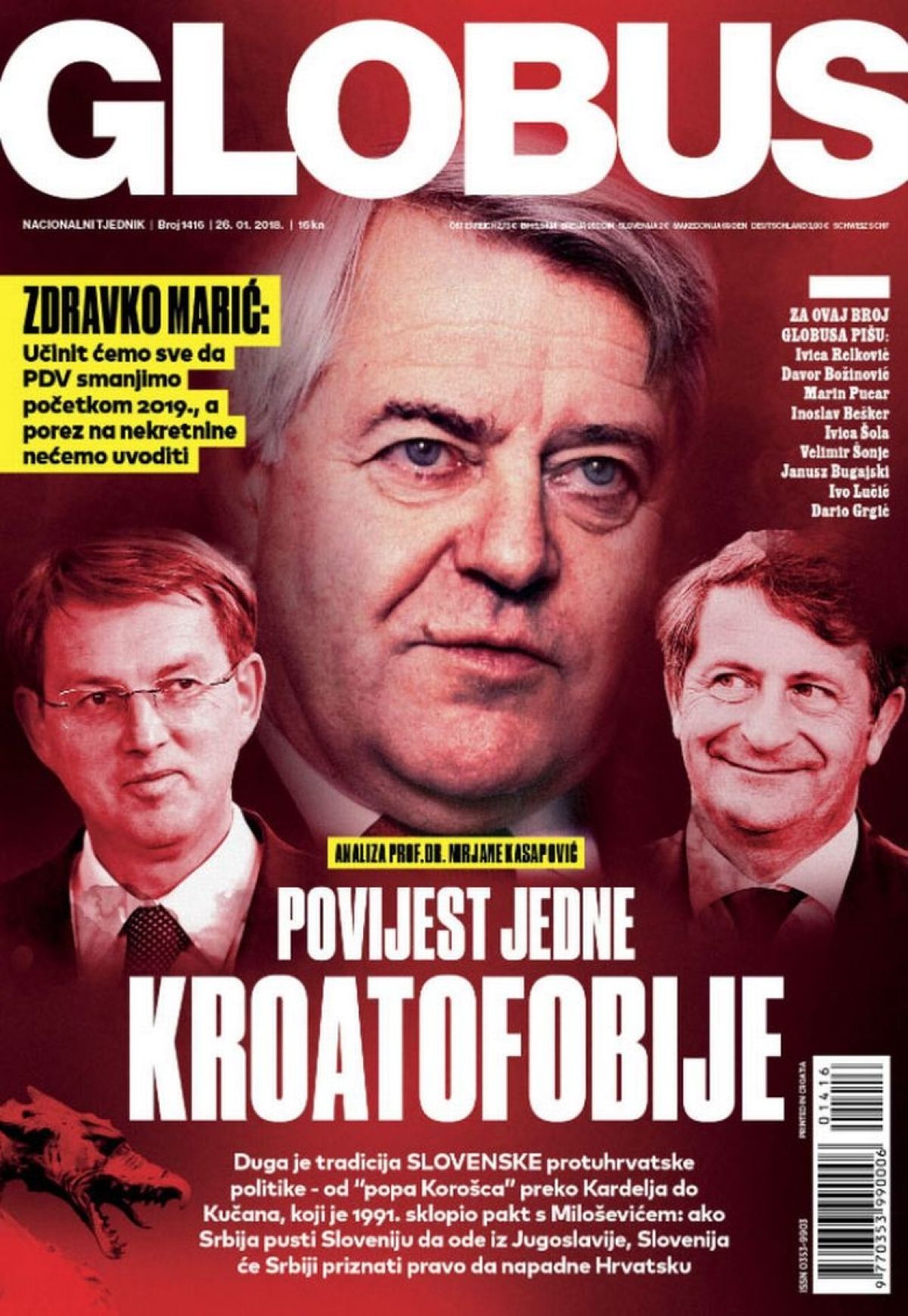 Zagrebški Globus nadaljuje s temami in intervjuji, ki se tako ali drugače dotikajo Slovenije in arbitražne sodbe. Očitno je del tiska južne sosede že v propagandni vojni. »Zgodovina neke kroatofobije« je naslovni članek v Globusu (tudi najbolj bran na spletni strani, kjer ga predstavljajo kot »Sto let slovenskega nacionalizma«), ki jo krasi velika fotografije Milana Kučana in manjši premierja Mira Cerarja in zunanjega ministra Karla Erjavca.