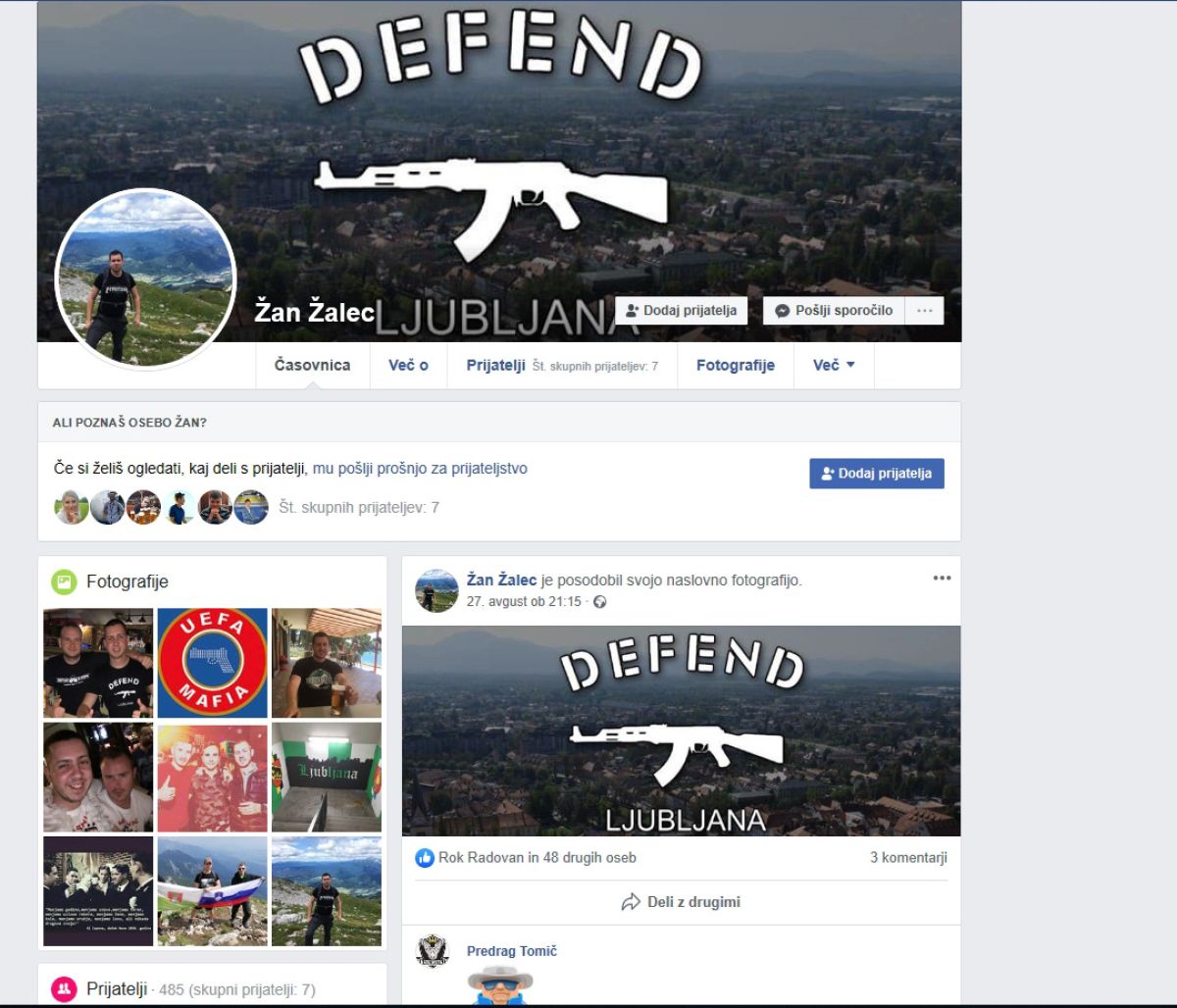 Isti napis s fotografijo kalašnikovke je do nedavnega imel tudi za naslovno fotografijo na svojem FB-profilu. Toda prejšnji teden je FB-profil zaprl za javnost. To se je zgodilo kmalu za tem, ko smo Ano Zagožen, mestno svetnico SDS v Ljubljani in članico vodstva SDM, vprašali, v kakšnih odnosih sta z njim in ali držijo naše informacije, da je bila njegovo dekle.