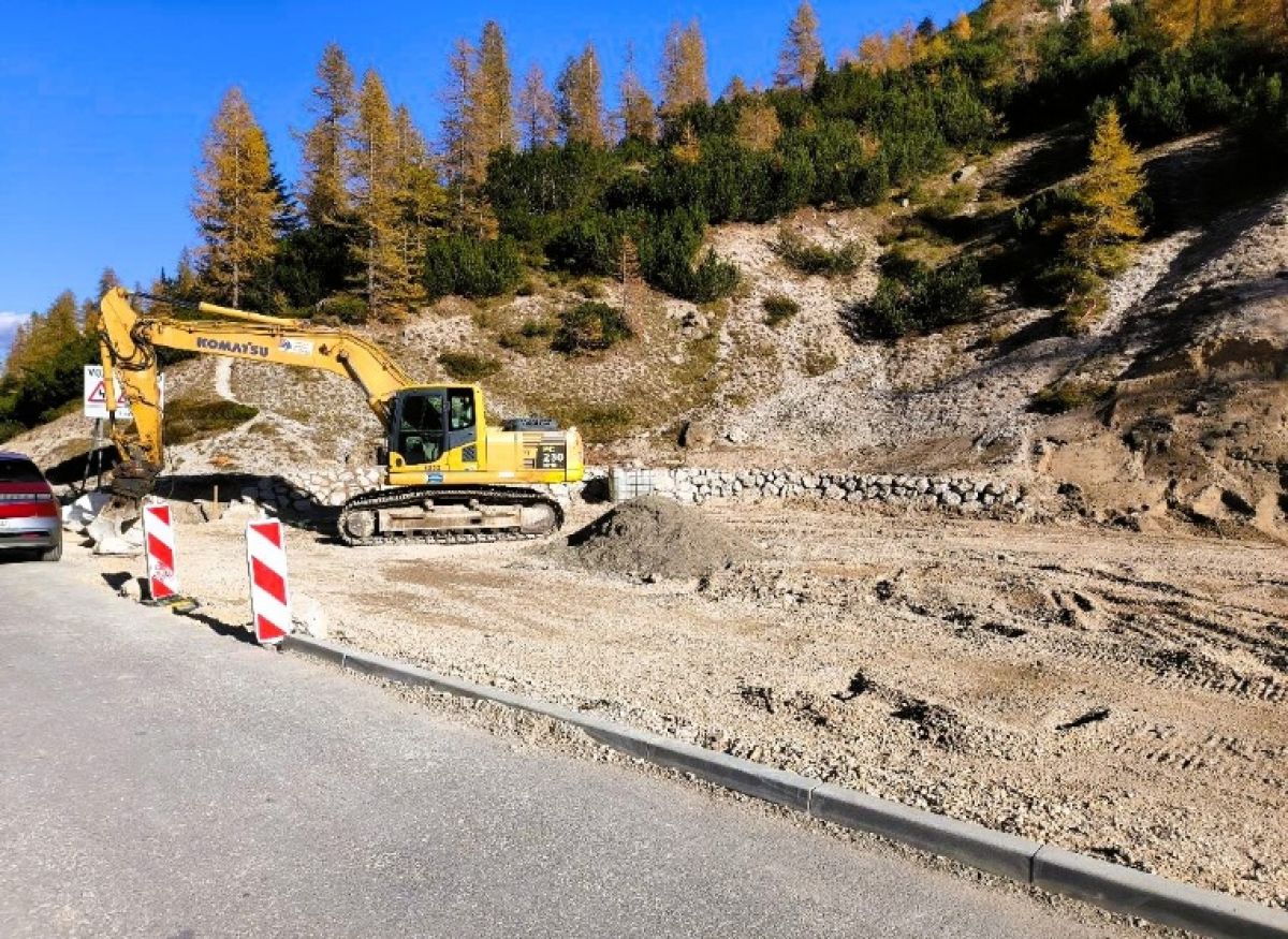 Zelo sem bil presenečen, da je bil večji del prelaza gradbišče tako kot meseca julija. Parkirni listek mi ni pomagal, saj je bilo parkirišče na naši strani zasedeno. Na dobro utrjenem makadamu, najbrž bo sledilo asfaltiranje, če bodo varuhi narave dovolili, je bilo na voljo 39 (neoznačenih) od napovedanih 92 parkirnih mest!