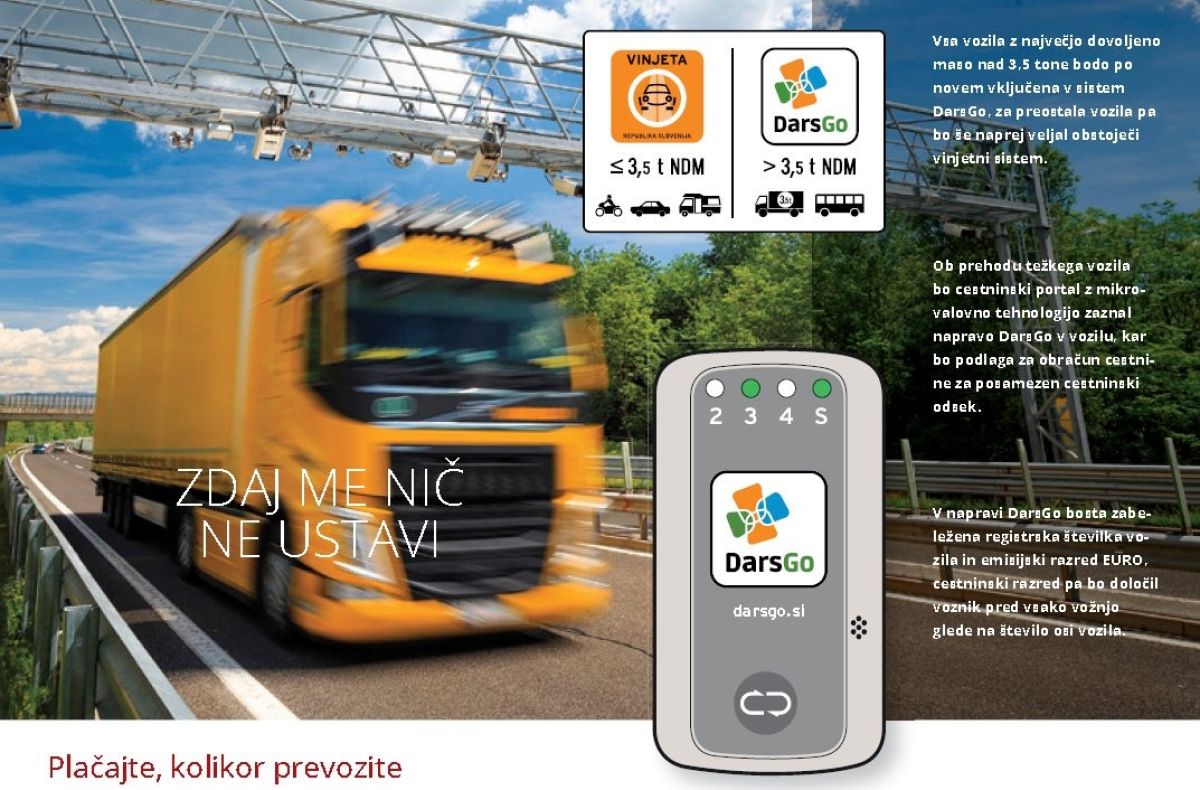 V napravi bo zabeležena registrska številka vozila in emisijski razred Euro. Če bo vozilo na avtocesto zapeljalo brez naprave DarsGo, to pomeni, da je voznik avtomatsko kršitelj, globe se začnejo pri 800 evrih, opozarjajo na Darsu.
