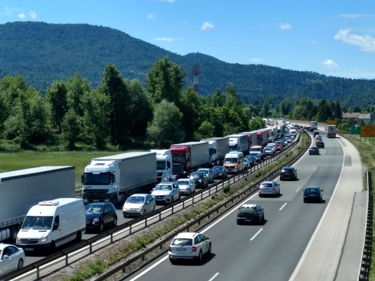 Ob višku poletne sezone je na cestah po Sloveniji povečan promet, ponekod nastajajo zastoji.