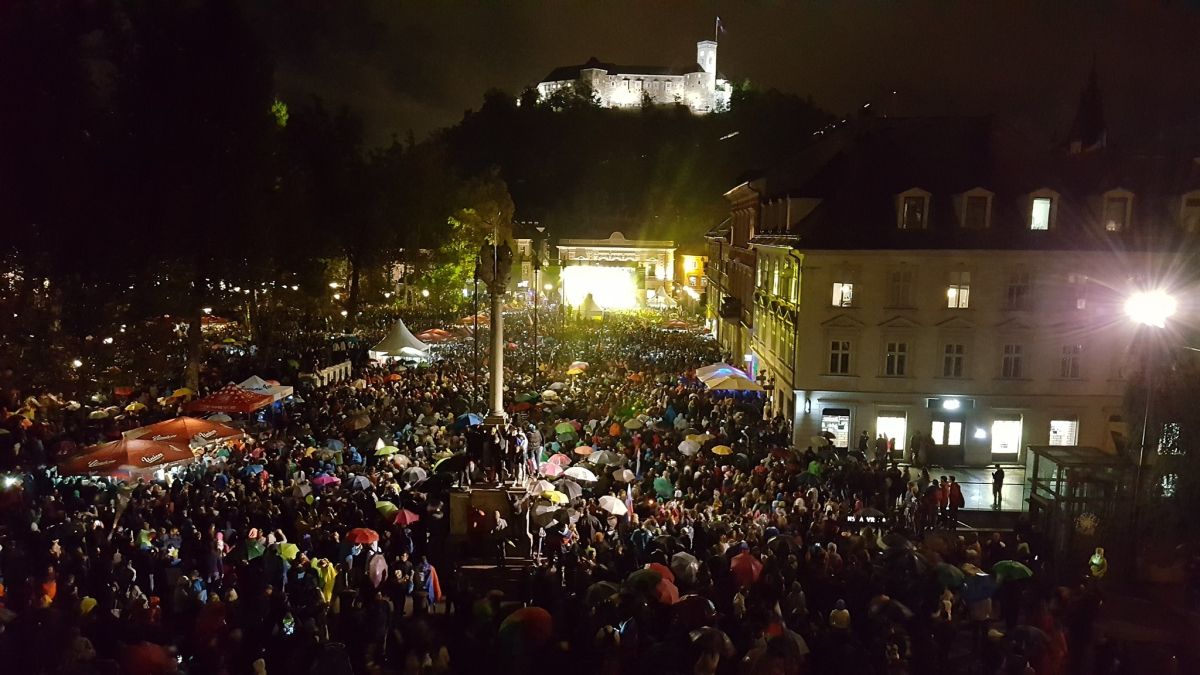 Deževalo je, dežniki in slovenske trobojnice, množično, nič kaj sramežljivo, ponosno in iz srca. Ob najpomembnejšem trenutku osamosvojitve Slovenije je dež zalil poln Kongresni trg v slovenski prestolnici. Tako je bilo tudi ob vrnitvi zlate slovenske košarkarske reprezentance, največjem športnem uspehu nove nacije doslej.