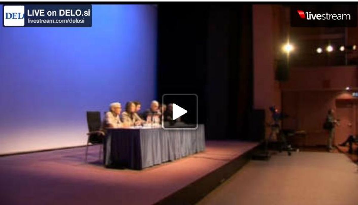 Vse politične opcije, ki so bile v preteklih 20 letih na oblasti, so si državo jemale za talca, poudarjajo udeleženci javne tribune civilne družbe, ki jo organizira Društvo slovenskih pisateljev. Ob tem pozivajo k vzpostavitvi DZ, ki bo opravljal svojo vlogo, spremembi kulture obnašanja in zamenjavi političnih elit. Ker je v manjši Linhartovi dvorani Cankarjevega doma kar nekaj sedežev ostalo praznih, je časopis Delo, ki v živo prenaša javno tribuno, na svoji spletni strani v fotogaleriji objavil "simbolično fotografijo" neke druge polne dvorane, iz nekega drugega neznanega dogodka (glej fotografijo spodaj). Še ena nova Delova manipulacija!