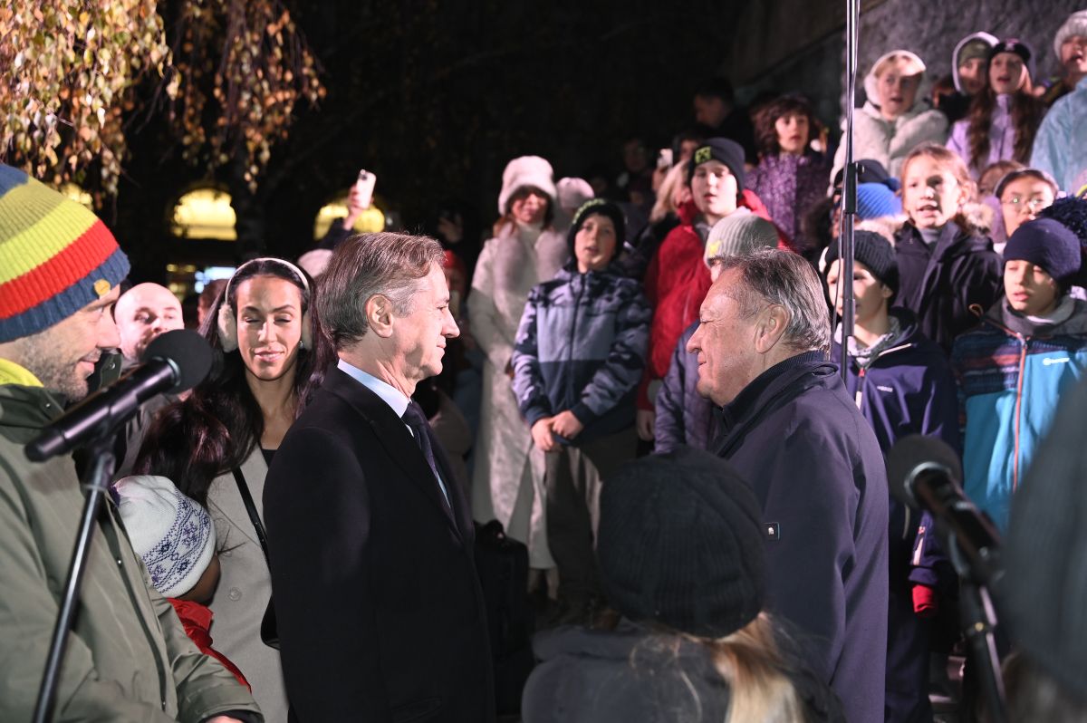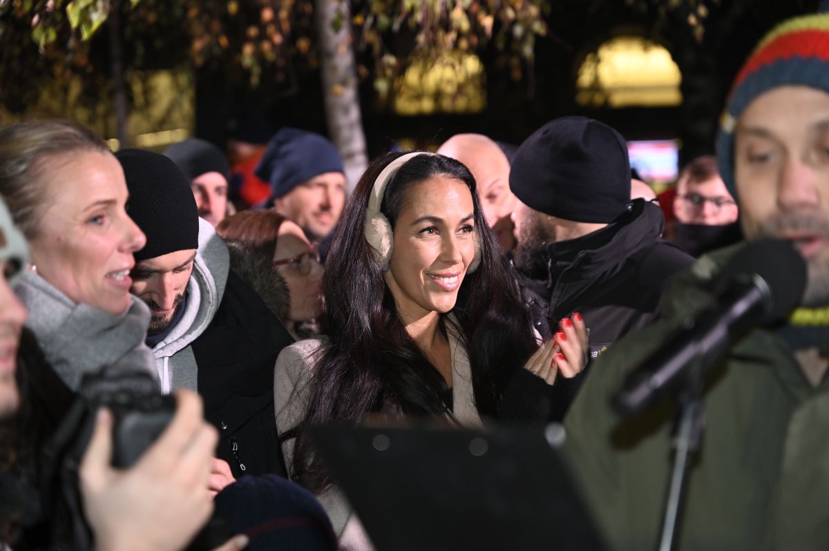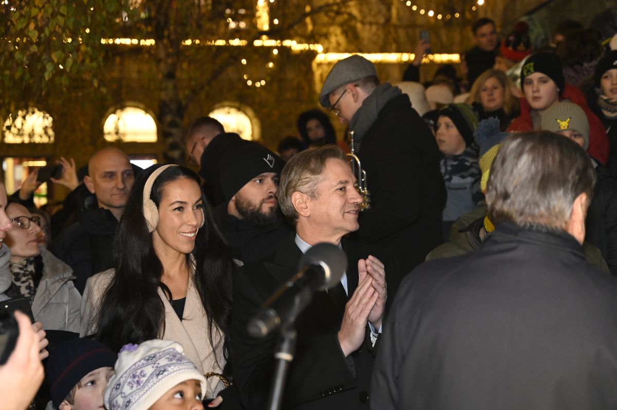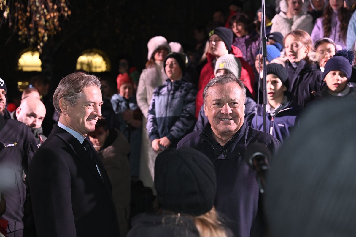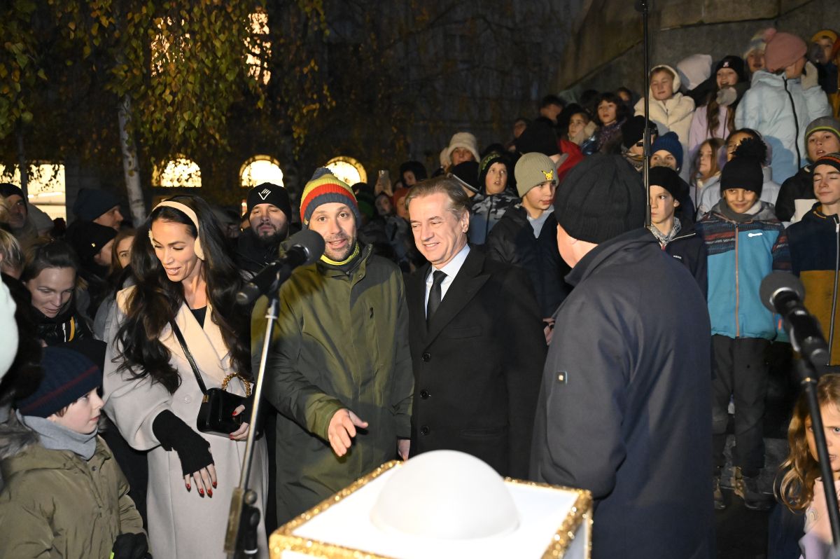 V Ljubljani so prižgali praznične lučke. Županu Zoranu Jankoviću sta družbo delala premier Robert Golob in soproga Tina Gaber Golob s posebnim darilom za župana.