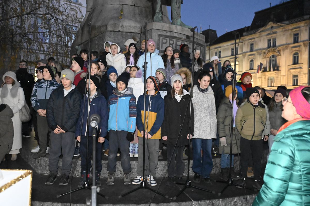 Množica otrok in odraslih zijal je popoldne dodobra napolnila Prešernov trg v prestolnici, kjer se je odvilo praznovanje ob prižigu luči.