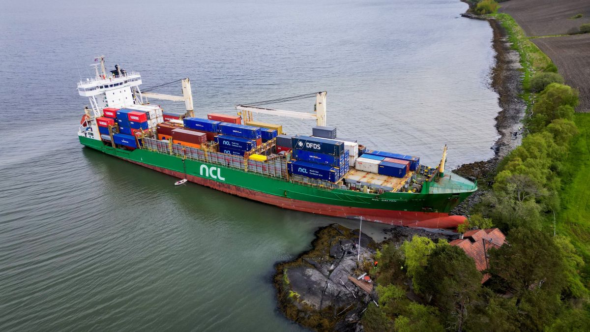 135-metrska kontejnerska ladja nasedla pred Norvežanovo hišo