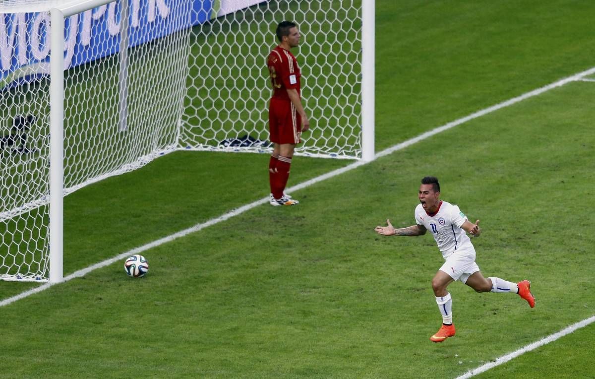 Čilska nogometna reprezentanca je v 2. krogu svetovnega prvenstva v Braziliji (skupina B) v Rio de Janeiru premagala Španijo z 2:0 (2:0).